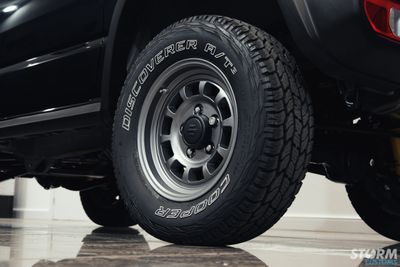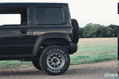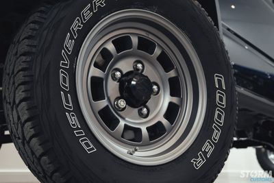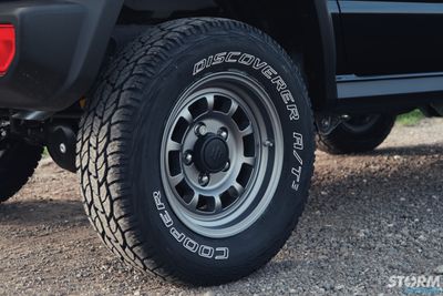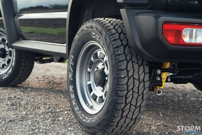 16” HIGH PEAK J-01 alloy wheel has been designed specifically to suit the Suzuki Jimny JB74 (2018+) platform which has been designed with a vintage style in mind, while utilising modern manufacturing techniques and conforming to the latest safety and strength requirements. TÜV type certified & strength tested specifically for the Suzuki Jimny JB74 (2018+, referred to as ‘GJ’ in the EU) Made in Italy. Guaranteed European quality. We have used 5 of these wheels on this build including the spare.