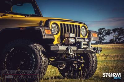The Smittybilt front and rear bumpers are manufactured from heavy duty 3/16” steel plating and powdercoat painted for the utmost longevity. The front bumper features strong tabs for D-rings and a sturdy winch mount platform. The rear bumper has a 2” receiver hitch to accommodate a number of tow hitch accessories.