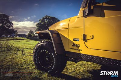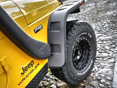 The Rugged Ridge Hurricane Flat Fender Flares feature a unique double bolt pocket as a modern spin on classic pocket flare styling. Engineered for both form and function, the fender flare’s unique shape complements the Wrangler’s rugged looks and lines, while mounting high up on the fender for extra clearance for oversized wheels and tires and thereby offering 2.89 –inch more tire coverage and 1-inch more tire clearance over similar OE designs. Each flare features a 2-inch larger wheel opening allowing for larger wheel/tire combos. Each 6.68-inch wide fender flare is constructed from durable black injection molded thermoplastic complete with a set of durable black corrosion resistant fasteners.