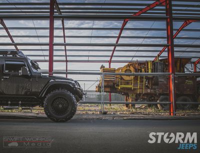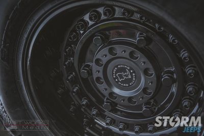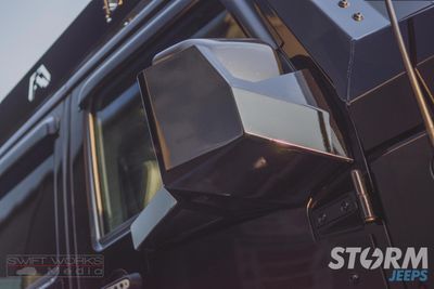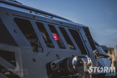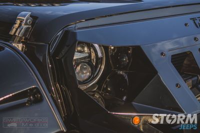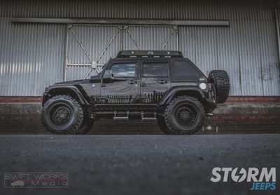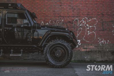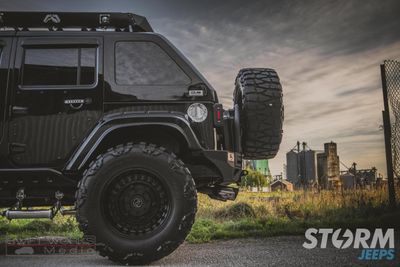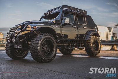 This Storm Jeep features AEV’s 4.5” DualSport Suspension System which takes suspension engineering to the next level. This kit brings OE-level suspension engineering to the aftermarket to create a true do-anything “dualsport” suspension – one that is both extremely capable off-road, while offering unparalleled on-road performance and handling. The DualSport system has been thoroughly tuned for impeccable behaviour in every situation you might put it in – and especially the ones you didn’t intend to.
