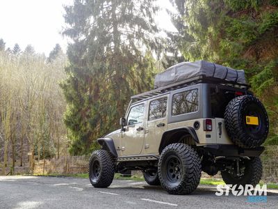 The cargo weight is evenly distributed across the roll bars and body of the jeep, placing zero weight on the hard top itself, meaning it is capable of using an ARB roof rent which cam unfold in minutes. A rooftop tent provides sleeping quarters off the ground, protected from the elements. Spacious and comfortable, all bedding can remain inside the tent during the journey, freeing up vital storage space in the vehicle, and allowing the tent to be quickly and easily packed away.