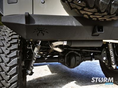 To keep things low profile at the back end, the standard exhaust muffler was replaced with the Rugged Ridge off road exhaust back box which is designed to sit as high as possible for extreme off-road ground clearance whilst producing a more aggressive tone than a stock muffler.