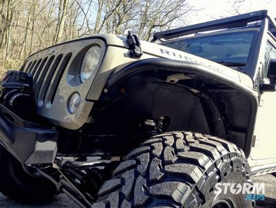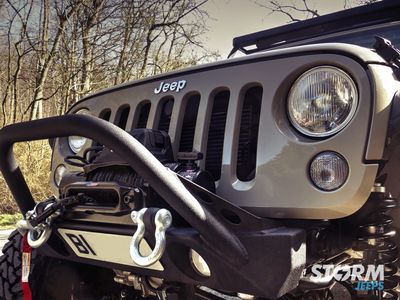The Poison Spyder Customs BFH front bumper is a stubby and low profile designed with the best ground clearance, tire clearance and approach angle possible. It is just slightly wider than the Jeep’s frame rails, with angled facets to improve its ability to slide over the rocks. The bumper features a gusseted ‘Brawler Bar’, integrated winch mount that housed the Warn Tabour 10-s winch and provisions for mounting the factory fog lights.