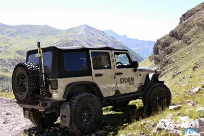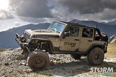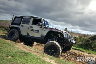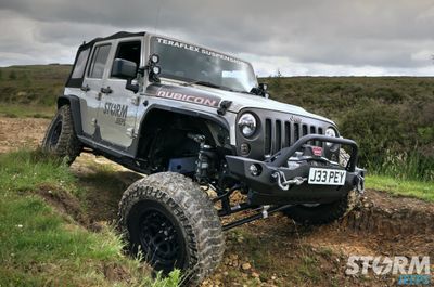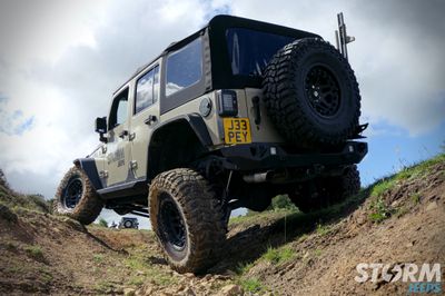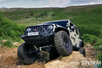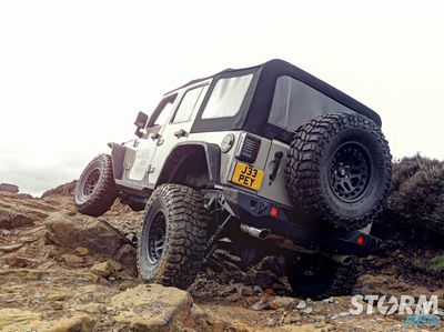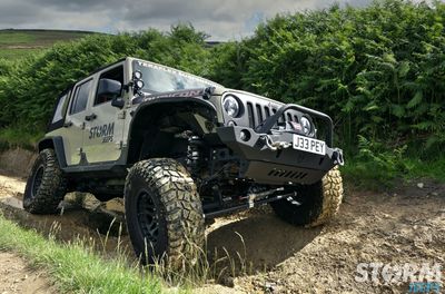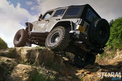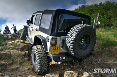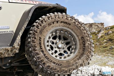 The Jeep is fitted with Huge 37” x 12.5” Cooper STT Pro tyres with 17” Hutchinson beadlock wheels: