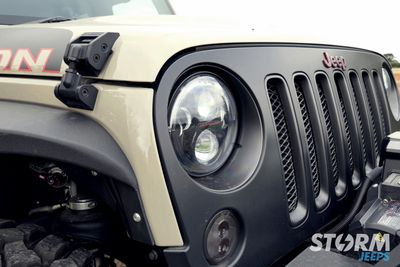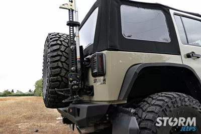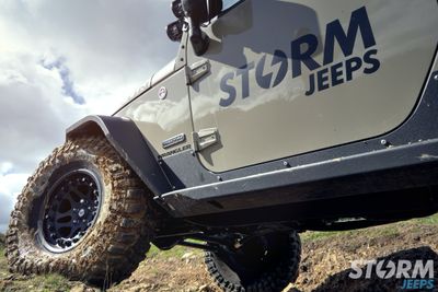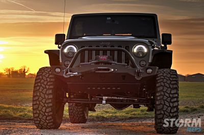 This Jeep has a matching set of JCR Offroad Cuisader body armour components which includes the front and rear bumpers, rock sliders and flat fender flares. The combination of these products provides increased protection and tyre clearance allowing 37” tyres to be fitted with the 3” Lift.