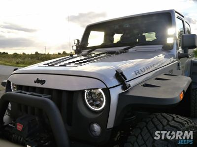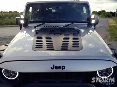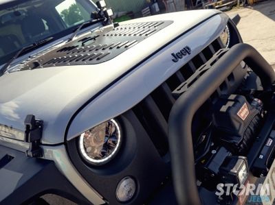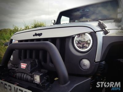 The front grill have been coated with matt black Raptor paint, accented with a body coloured Nighthawk grill brow with black Jeep logo.