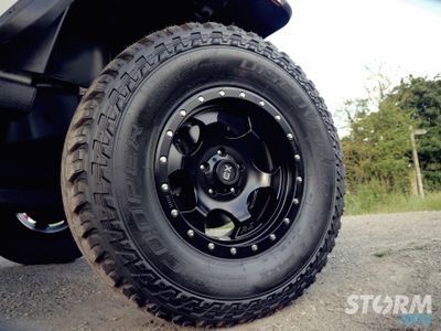 17” deep dish XD131 RG1 Satin Black Wheels by XD Series are a stylish 6 spoke wheel built for those who need precise equipment for an imprecise environment. These lightweight, strong, and race-tested wheels are always looking to take on the next challenge and ready to thrive on the dirt and chaos of extra-duty, off-road racing. These wheels have been fitted with 315/75R17 Cooper ST Maxx premium brand tyres. These are an aggressive all terrain tyre measuring 35” tall by 12.5” wide suiting the 2.5” raised suspension height perfectly.