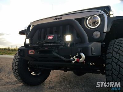 ARB Stubby front winch bumper complements the flat fenders perfectly. The Jeep Wrangler JK Stubby Bar has been developed for the off-roader who is after a winch platform all while maintaining maximum clearance for larger diameter tyres.