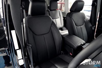 Heated Black McKinley leather seats Diesel Grey accent stitch with corresponding console lid, steering wheel & door armrest with Diesel Grey accent stitch.