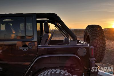 The unique fender styling comes from Poison Spyder aluminium Crusher fender flare which have been colour coded to match the Jeeps body work. The Jeep JK’s factory fenders and stock plastic flares are among the most vulnerable body components when traversing the trail. Poison Spyder JK flares improve both the aesthetics and durability of the Jeep during off road adventures as it features an inner brace system increasing toughness to withstand punishing scrapes with granite canyon walls.