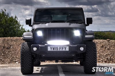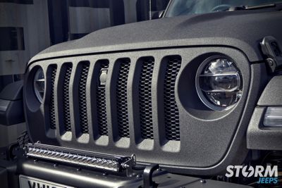 Rugged Ridge Spartacus recovery bumper has a tough satin black powder-coated finish made from a sturdy 11 gauge stamped steel construction. The stamping process allows for the most advanced styling on the market, creating a tough looking bumper with structural tow hooks that is not much heavier than the standard fitment. In the centre of the bumper is a 20” wilderness LED light bar that works in conjunction with factory LED headlight high beams giving an impressive lighting solution for the dark nights.