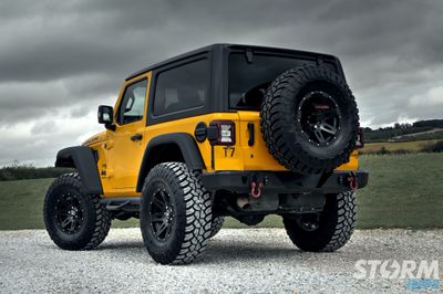 We have cleared room for huge 37” tyres with only a 2.5” suspension lift. This has been achieve by combining the Teraflex 2.5” suspension lift with Mopar high top fenders which create an additional 2” clearance for the tyre within the fender flares. This lower lift height / high fender combination creates a lower centre of gravity for both on-road comfort and off-road performance in comparison to larger suspension lifts.
