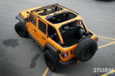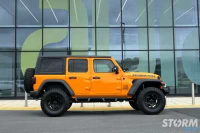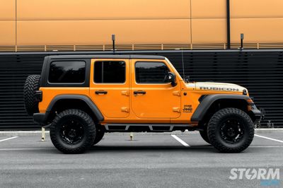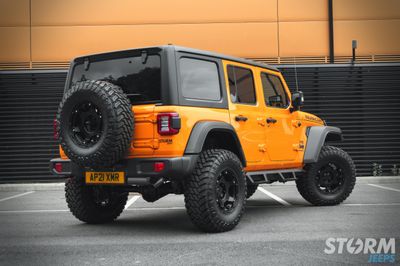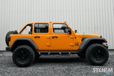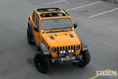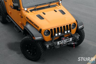 The increased suspension height clears room for chunky 35×12.5” Atturo Trailblade MT tyres mounted to 17 × 8.5” Teraflex Nomad wheels, these cast alloy wheels feature a reinterpretation of the classic six-hole design. Engineered with a “form follows function” philosophy resulting in a technical look complement the Jeep aesthetics perfectly.