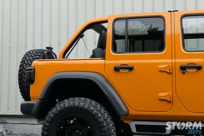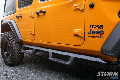 The N-Fab EpYx drop down step provides a sleek and polished aesthetic to the Jeep. The expanded step plate offers the ultimate ease of access to the lifted Jeep. Angular steel construction offers long lasting durability and strength with great style.