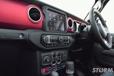 The interior is where you will find major improvements over the previous generation JK Wrangler. Modern in every way, the interior of the JL Wranger raises the bar to new heights. Black Mckinley leather-trimmed bucket seats with accent stitching and Rubicon logo perfectly complement the black exterior, Leather trim heated steering wheel, new customizable 7-inch Driver Information Digital Cluster Display and an available Uconnect® system 4C NAV with an 8.4-inch touchscreen with full Apple and Android connectivity , you’ll always drive in comfort and style.