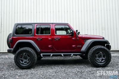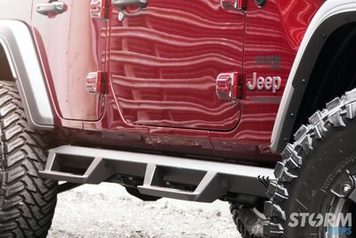 The N-Fab EpYx drop down step provides a sleek and polished aesthetic to the Jeep. The expanded step plate offers the ultimate ease of access to the lifted Jeep. Angular steel construction offers long lasting durability and strength with great style.