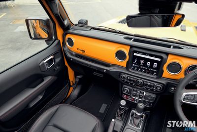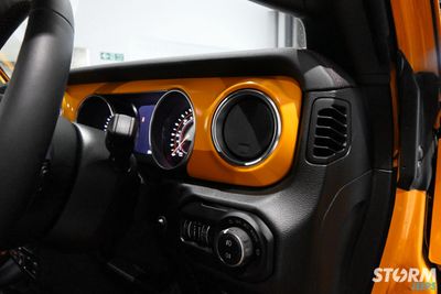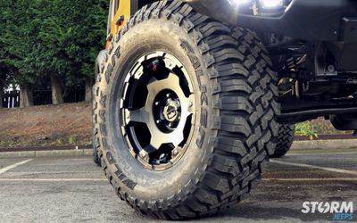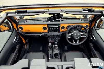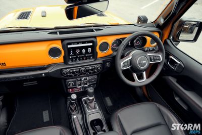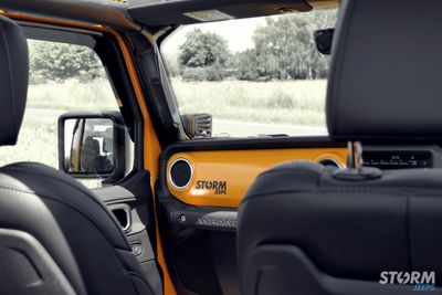 The increased suspension height clears room for chunky 35×12.5” Falken Wildpeak MT tyres fitted to 17 × 8.5” Teraflex Nomad wheels, these cast alloy wheels feature a reinterpretation of the classic six-hole design. Engineered with a “form follows function” philosophy resulting in a technical look complement the Jeep aesthetics perfectly.
