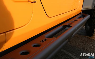 Smittybilt’s new SRC Side Armour with Step offers heavy duty manufacturing with wheel-to-wheel protection finished in a sleek and modern light textured finish fame as front bumper with laser cut Smittybilt logo.