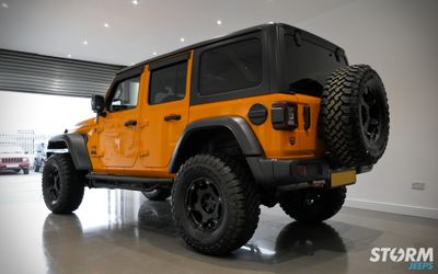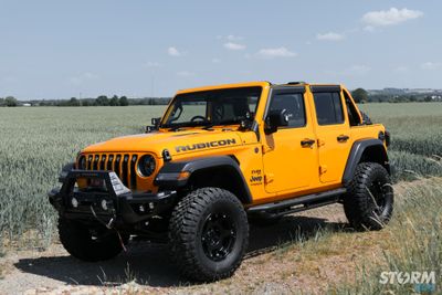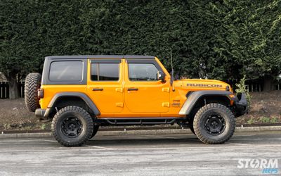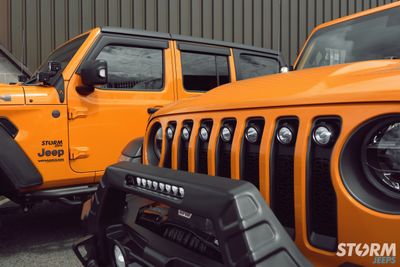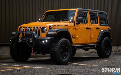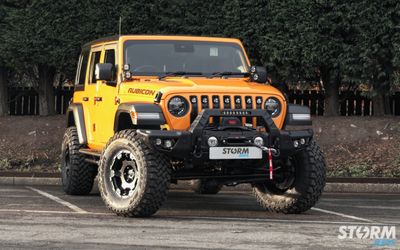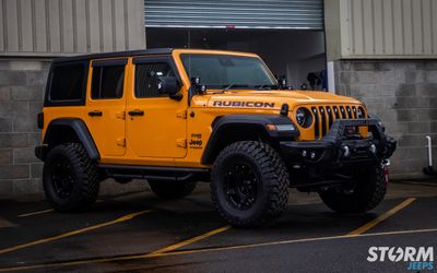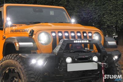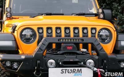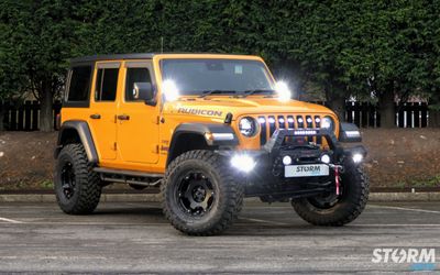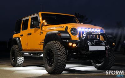 This Jeep has some serious lighting power with 8 x Ridge Radiance Pod lights. Radiance Pods features independently controlled amber backlighting, built with a rugged aluminium alloy housing to protect the three powerful LEDs inside, while a black exposed printed circuit board is visible through the durable polycarbonate lens for a unique industrial look.