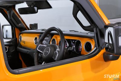 The interior is where you will find major improvements over the previous generation JK Wrangler. Modern in every way, the interior of the JL Wranger raises the bar to new heights. Black Mckinley leather-trimmed bucket seats with accent stitching and Rubicon logo perfectly complement the black exterior, Leather trim heated steering wheel, new customizable 7-inch Driver Information Digital Cluster Display and an available Uconnect® system 4C NAV with an 8.4-inch touchscreen with full Apple and Android connectivity , you’ll always drive in comfort and style.