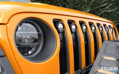 7 x LED Grill lights with industry first design which maintains the JL’s signature factory appearance featuring 7 – 2” Round CREE LED Lights. The Laser Cut Billet Series features a heavy 3/16” blade contoured & cut precisely to extend into the signature Jeep grille openings and offers a unique custom look.