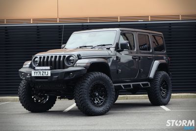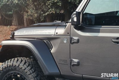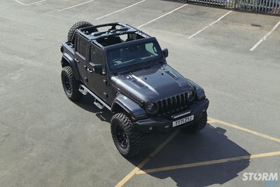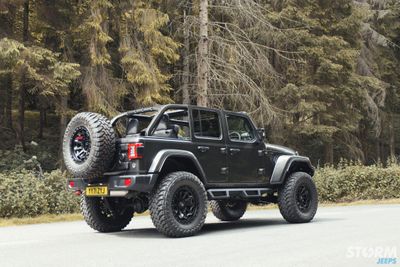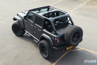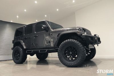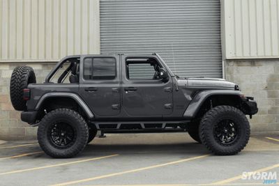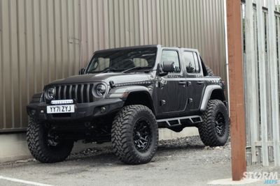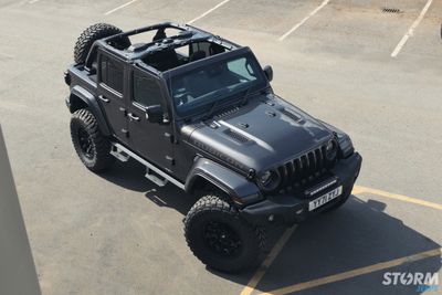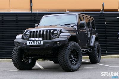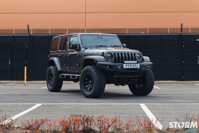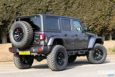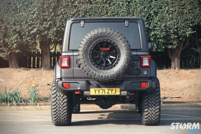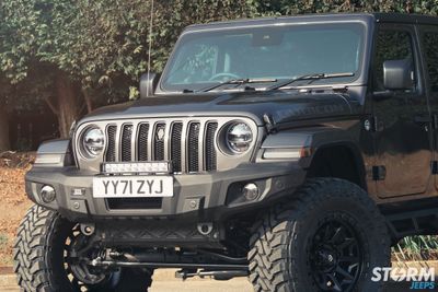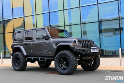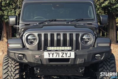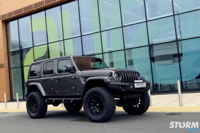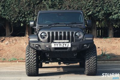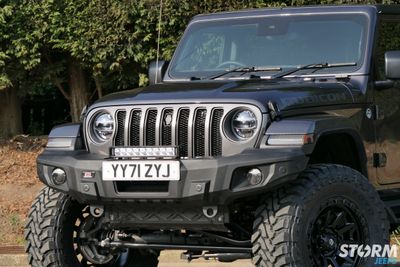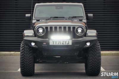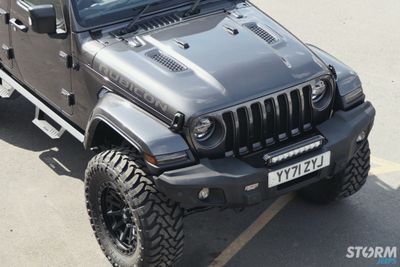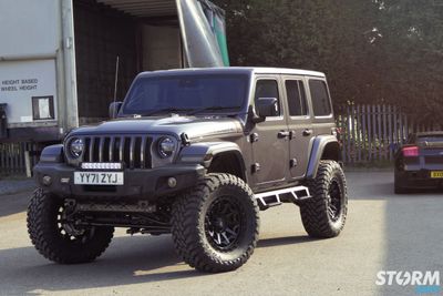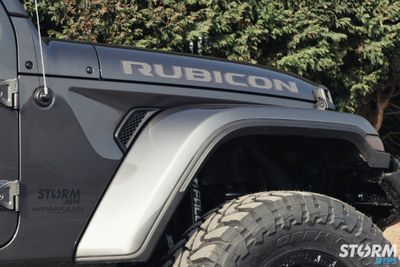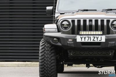 Rubicon Wranglers don’t usually get colour coded fender flares, but on this build we have had these colour matched with the body, along with lightly smoked side running and fog lights.