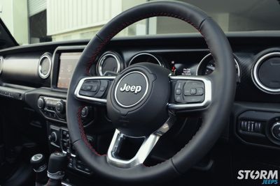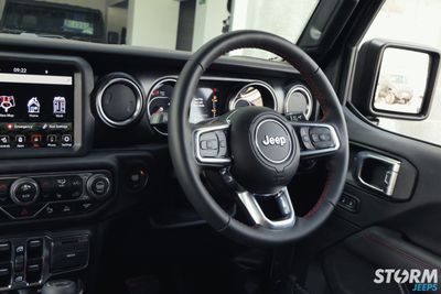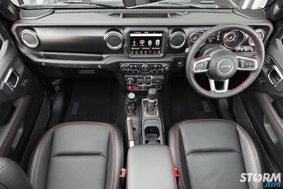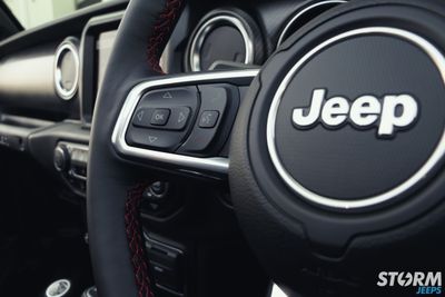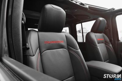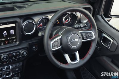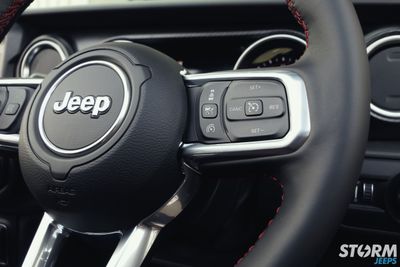 The interior is where you will find major improvements over the previous generation JK Wrangler. Modern in every way, the interior of the JL Wranger raises the bar to new heights. Black Mckinley leather-trimmed bucket seats with accent stitching and Rubicon logo perfectly complement the black exterior, Leather trim heated steering wheel, new customizable 7-inch Driver Information Digital Cluster Display and an available Uconnect® system 4C NAV with an 8.4-inch touchscreen with full Apple and Android connectivity , you’ll always drive in comfort and style.