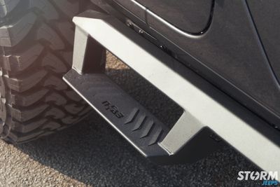 The N-Fab EpYx drop down step provides a sleek and polished aesthetic to the Jeep. The expanded step plate offers the ultimate ease of access to the lifted Jeep. Angular steel construction offers long lasting durability and strength with great style