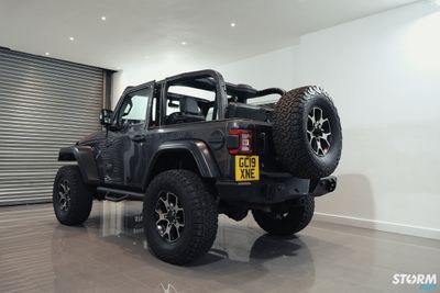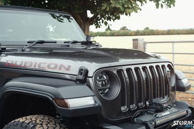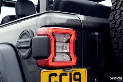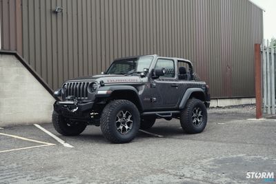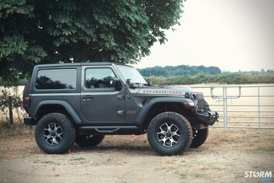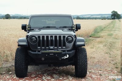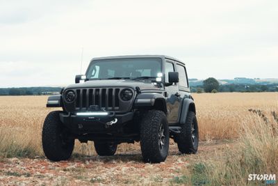 The Front bumper accommodates a 20” Procomp LED light bar, the innovative design of this light bar provides increased visibility in even the darkest of driving conditions. 4 off additional Procomp LED lights on the pillars which have been added using Artec Industries mounts. These small yet very powerful LED cube lights produce a massive 3200 Lumens of light per unit. Under the Jeep has 4 x colour change LED rock light mounted.