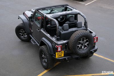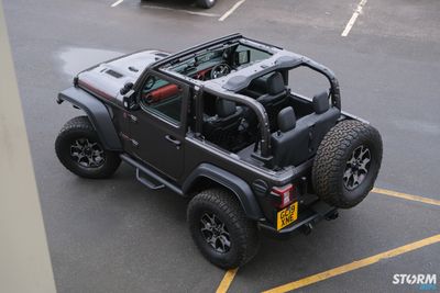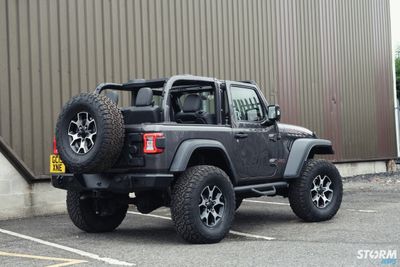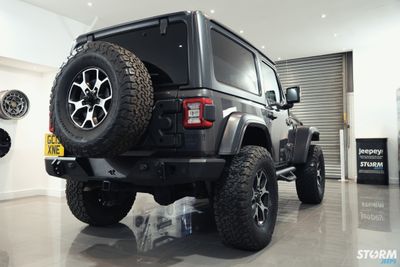 The numberplate has relocated out of harms way and HD Rugged Ridge tyre carrier is capable of handling the huge 35” spare with rear view camera integration.