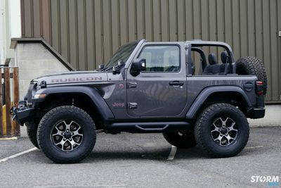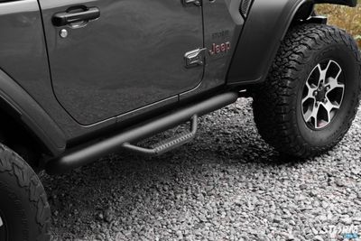 The Rugged Ridge Spartan Nerf bars are the ideal solution offering a little help climbing into this lifted Jeep without sacrificing that aggressive off-road attitude. These Spartan Nerf Bars feature a 3-inch OD primary tube that fits in a higher position than conventional tube steps offering a cleaner look, while patented drop-down step hoops at each door gives you firm footing for easy entry & exit.