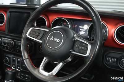 The interior is where you will find major improvements over the previous generation JK Wrangler. Modern in every way, the interior of the JL Wranger raises the bar to new heights. Black Mckinley leather-trimmed bucket seats with accent stitching and Rubicon logo perfectly complement the black exterior, Leather trim heated steering wheel, new customizable 7-inch Driver Information Digital Cluster Display and an available Uconnect® system 4C NAV with an 8.4-inch touchscreen with full Apple and Android connectivity , you’ll always drive in comfort and style.