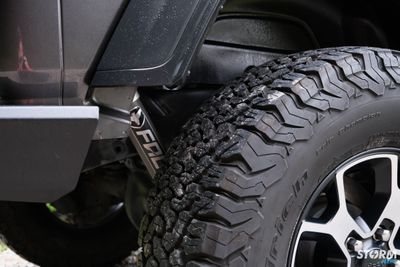 The increased suspension height clears room for chunky 315/70R17 BFGoodrich Ko2 All terrain tyres fitted to factory wheels with 1.75” Teraflex hub centric wheel spacers. The BFGoodrich tyres are proven worldwide for providing aggressive traction on and off the road.