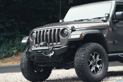 Rugged Ridge HD Series Front and Rear Bumpers are trail-tested, proven designs. The front bumper is engineered to take the 12,000lbs Terrafirma Winch, both front and back bumpers are with built-in jack lifting points at every corner and massive recovery hooks, each one dual-drilled to work with both ¾ and 7/8-inch shackles .