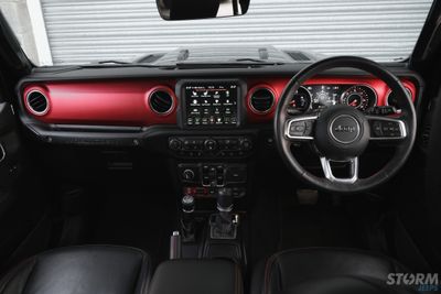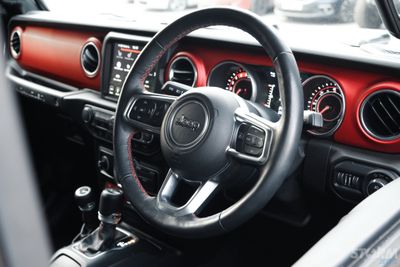 The interior is where you will find major improvements over the previous generation JK Wrangler. Modern in every way, the interior of the JL Wranger raises the bar to new heights. Black Mckinley leather-trimmed bucket seats with accent stitching and Rubicon logo perfectly complement the black exterior, Leather trim heated steering wheel, new customizable 7-inch Driver Information Digital Cluster Display and an available Uconnect® system 4C NAV with an 8.4-inch touchscreen with full Apple and Android connectivity , you’ll always drive in comfort and style.