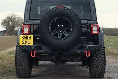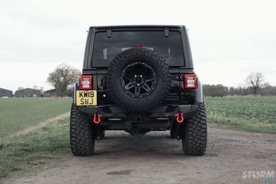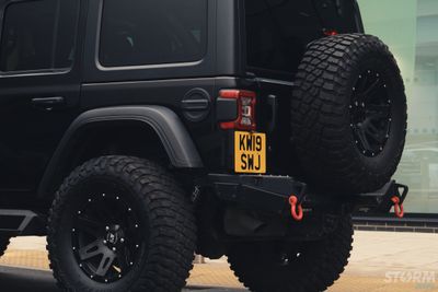 The rear Smittybilt XRC bumper provides increased clearance and have angled corners for more aggressive approach angles in extreme conditions – perfect for this Jeep running larger tyres. Solid D-ring and jack point mounts are welded on the inside and out, and feature an integrated recovery point for easy access. The bumper also features integrated LED reverse lights.