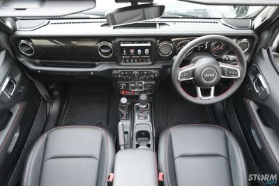 The interior is where you will find major improvements over the previous generation JK Wrangler. Modern in every way, the interior of the JL Wranger raises the bar to new heights. Black Mckinley leather-trimmed bucket seats with accent stitching and Rubicon logo perfectly complement the black exterior, Leather trim heated steering wheel, new customizable 7-inch Driver Information Digital Cluster Display and an available Uconnect® system 4C NAV with an 8.4-inch touchscreen with full Apple and Android connectivity , you’ll always drive in comfort and style.