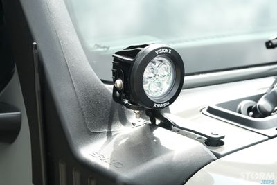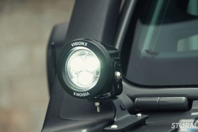 Pillar mounted Vision X 3.7” LED light cannons. Small in size, high in output. Light Cannons are the ultimate light for blasting through the night with a powerful broad driving beam pattern and outstanding medium distance lighting coverage. .