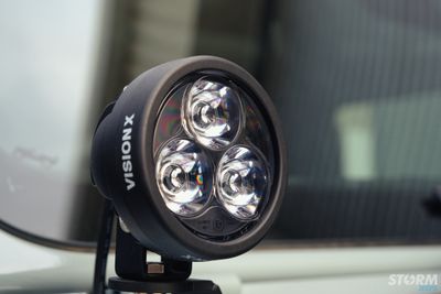 Pillar mounted Vision X Cannon Race Series 3 LED driving lights (CR-3) delivers the highest performing 36-watt compact driving light to hit the market. The CR-3 features a unique beam system which allows you to swap between an ultimate distance spot lens or a wider street-legal hybrid lens to fit your application. Ready for the most extreme environments the CR-3’s are submersible and watertight with a IP68/69K housing that is capable of withstanding any adventure you can throw at it.
