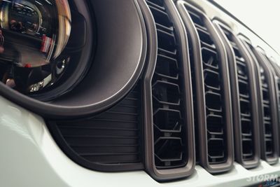 The newly redesigned seven-slot grille takes inspiration from the distinctive look of the Jeep® Rubicon 20th Anniversary Edition. The updated look is also functional, providing more airflow to the powertrain. Plus, the redesigned exterior features a trail-ready antenna that’s been relocated to help prevent getting caught while off-roading.