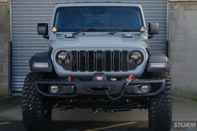 This complete 3-piece steel Mopar performance bumper assembly is the same front off-road bumper found on the USA production Rubicon models. Modular design allows for end caps to be removed leaving higher clearance stubby centre section. The bumper accommodates an 10,000lbs Warn VR Evo Winch with synthetic rope. The VR EVO features IP68-rated waterproof construction, an ultra-reliable Albright® contactor inside a relocatable control pack, and a state-of-the-art, two-in-one remote for added ease of use and versatility. With its fast line-speed and lower amp draw, the VR EVO winches are the hardest-working standard-duty winches we’ve ever made, with tactical styling that looks great up front.