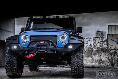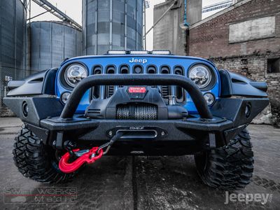 The tough and stylish Smittybilt XRC M.O.D. bumper gives full width coverage and houses the 9,500lbs Comeup winch. Coated in a two stage textured matte black finish. The bumper is also equipped with D-Ring mounts that are welded on the inside and out that provides a towable anchor for off road recovery situations.