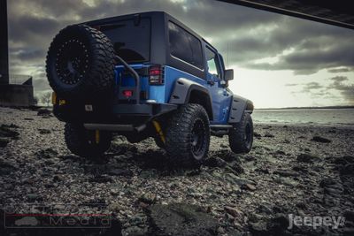 Smittybilt XRC Atlas rear bumper perfectly fits to the Jeep Wrangler contours and features a dual-stage matte black powder coat finish. The tyre carrier provides support for the heavy oversized tyre and is a height adjustable with cam-style pin adjustment ensuring perfect gate stowing.