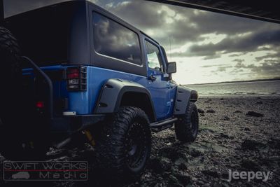 With their recessed stainless steel bolts and massive presence, Pocket StyleFender Flares are a Bushwacker original manufactured in the USA. They’re custom-designed for the Jeep Wrangler to complement oversized tyres and high-clearance suspension. Matte black finish – they’re UV protected so they won’t fade.