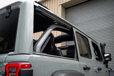 The Sky One-Touch roof is a soft-top roof that retracts with the touch of a button. It is the full width of the vehicle and retracts from the windshield header all the way to the cargo area in the Wrangler. The Sky One-Touch is a convertible roof. It provides all the benefits of a convertible with fewer downsides.