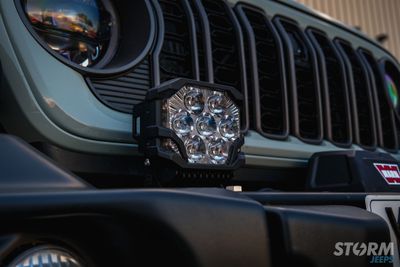 Bumper mounted Morimoto BigBanger LED Light Pods – the ultimate off-road lighting solution! These pods are more than just powerful; they redefine performance, reliability, and versatility in the world of automotive lighting. At the heart of the BigBanger’s prowess lies the NCS Spot beam LED and delivers an intense 5-degree hot spot, complemented by a 14H x 4C degree flood beam, ensuring exceptional long-range visibility. Built for excellence, these pods feature modern, lumen-dense LEDs from Nichia and Osram, optimized with LucidShape technologyPlus, with modern LEDs from Nichia, you can count on intense and reliable performance, no matter where your adventures take you. But that’s not all! for added convenience, these pods feature an integrated amber back Llght for day time visibility.