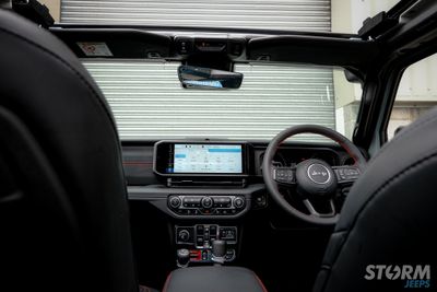 Modern in every way, the interior of the 2024 JL Wrangler raises the bar to new heights. Black Mckinley leather-trimmed bucket seats with accent stitching and Rubicon logo perfectly complement the black exterior, Leather trim heated steering wheel, customisable 7-inch Driver Information Digital Cluster Display and a new advanced Uconnect® 5 System with its upsized 12.3-inch touchscreen.