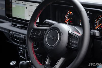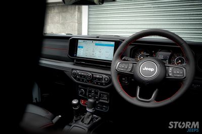 Modern in every way, the interior of the 2024 JL Wrangler raises the bar to new heights. Black Mckinley leather-trimmed bucket seats with accent stitching and Rubicon logo perfectly complement the black exterior, Leather trim heated steering wheel, customisable 7-inch Driver Information Digital Cluster Display and a new advanced Uconnect® 5 System with its upsized 12.3-inch touchscreen.