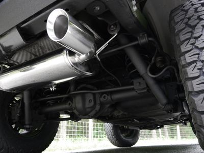 Twin exit stainless exhaust by Rugged Ridge. Added flow decreases back pressure and efficiently increases horsepower. The dual exhaust system features slash cut and rounded oval tips for a tough look and awesome sound.