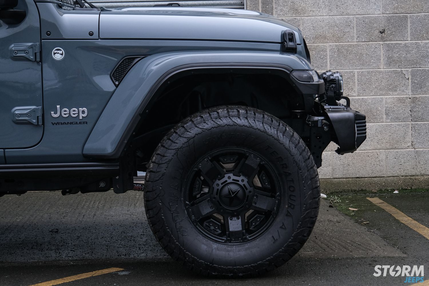 Teraflex 2.5” suspension lifting kit maintains original handling characteristics whilst providing clearance for huge 35” tyres for an improved chunky stance. This comprehensive kit replaces a number of components often overlooked when lifting a Jeep such as longer sway bar links, castor corrected control arms, shock and bump stop extensions. TeraFlex is an American manufacturer of premium suspension systems and have been professionally involved with Jeeps since the 1950s, their experience combine with ours at Storm Jeeps allows us to make custom Wranglers perform their best.